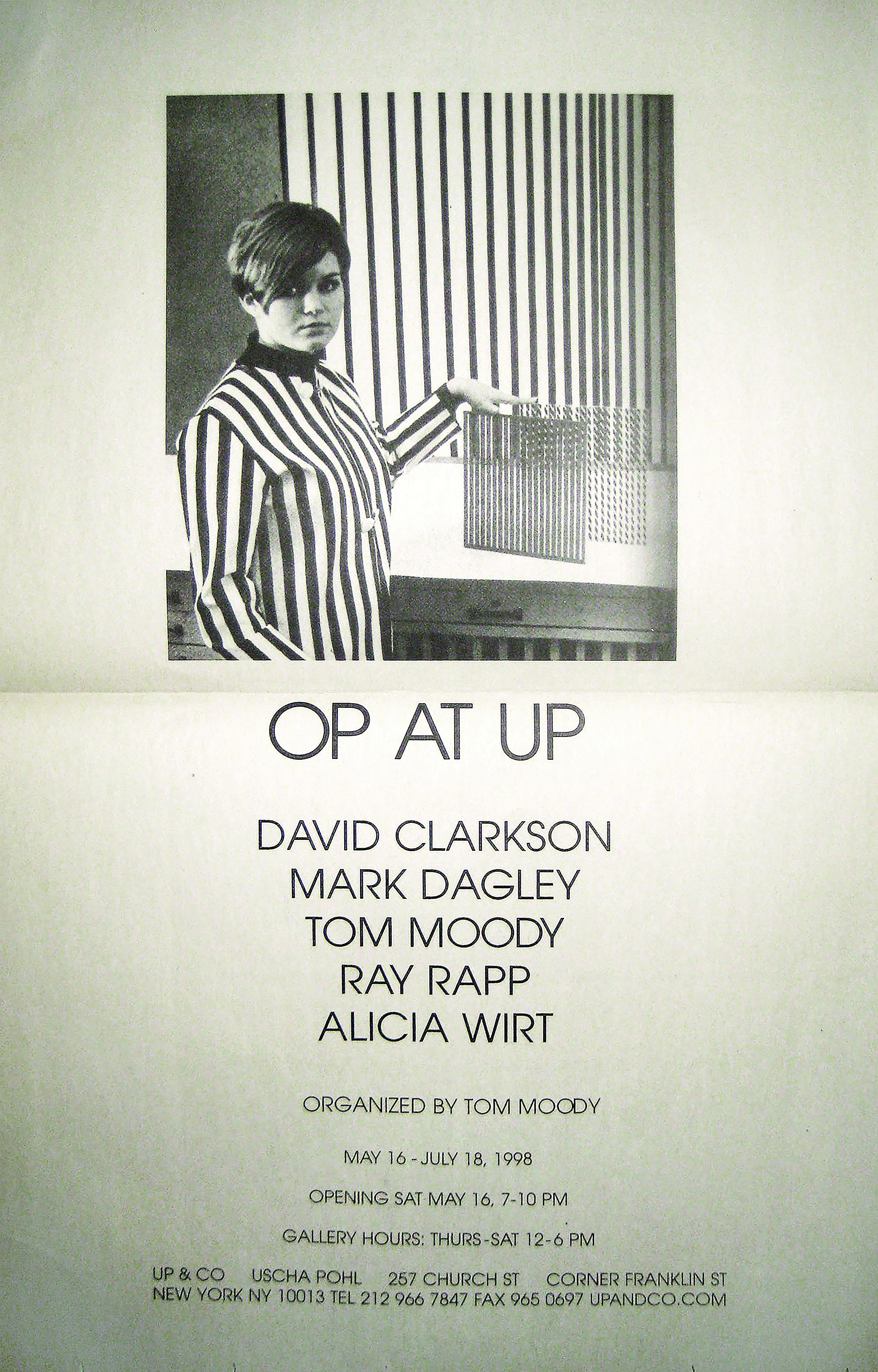 The group show “OP at UP” in 1998, brainchild of Tom Moody and Mark Dagley, was conceived to coincide with the first Op art exhibition at the MOMA since the 1960s. The success of the exhibition – and subsequent curators’ dinner – spurred a touring exhibition across the United States and creating “Posthypnotic art” as new art genre.
