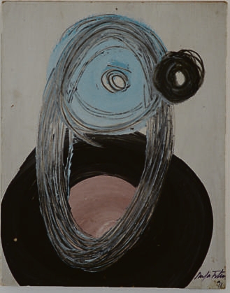 “Rafa Forteza however was rightly convinced of the value of these sculptures proven by the fact that he was able to preserve them for over 30 years. They are an archive as well as time capsules creating a dialogue between different moments in life. Also, there is a multilayered ‘circularity’ in his oeuvre: circles of time, in the round objects within the sculptures, the circular wrapping movement, and the presence of circles in his more recent paintings. Also, one work for example was started in the 90s but was finished just before the opening, illustrating his very long processes and how he returns to earlier starting points, works and reworks, showing that the work never really finishes, rather is an ongoing process.”