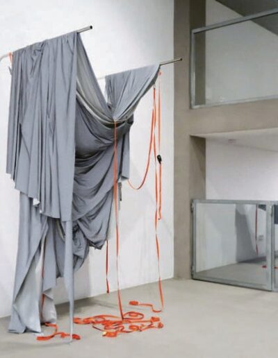 “The exhibition gathers artists working with textiles from a contemporary perspective. The concept relates to methodology for research, like following a line that can lead you somewhere, but at the same time ‘pulling a thread’ as gesture holds also destructive potential. This doublemeaning and how a simple act can make a whole system unstable – or come undone – underpins the exhibition.”