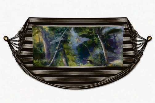 Cámara de ecos exhibition view photo Uscha Pohl; below right: Rafa Forteza sculptures S.T., 2018, Acrylic paste, wood, seeds, stone, 100 x 28 x 23 cm and S.T. 2019, mixed media 80 x 12x 12 cm; photo by Tomek Sierek; center: Recorridos que articulan relatos (Ferdinand Bellerman) II, 2025 130 x 250cm, Néstor Garcia, oil on hammocks, from the exhibition Tirar de l‘Hilo, Baró Galeria; below left to right: views of Melting Ice at Balazsi Gallery: ST (Parachute) IV, 2024, Natalia Domínguez, reflective fabric, ropes, carabiners, pulleys, stainless steel tubes, steel cable / Tela reflectante, cuerdas, mosquetones, carracas, tubos de acero inoxidable y cable de acero, 190 x 220 x 175 cm; performance Roer II (2026) by Vera Mota, photos Ana Mariya Stoyanova Piruleva