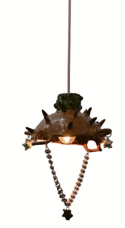 Alexandra Hecker, GAA Gallery, exhibition Tricksters II by Katja Farin, The Crows Watch, 2025, oil on canvas, 190 x 165 cm; Lamp, 2025, stoneware, glaze, metal ring photos Tomek Sierek