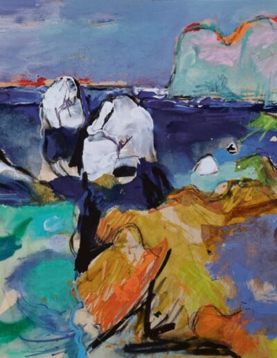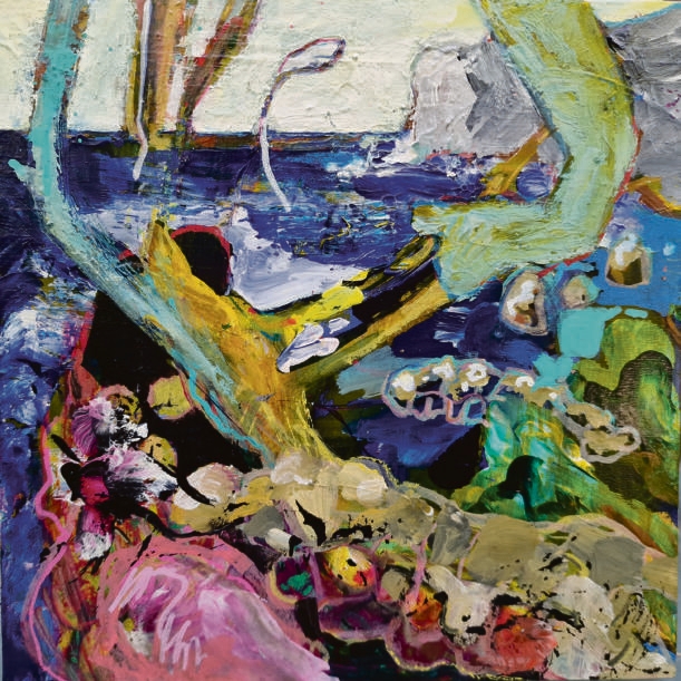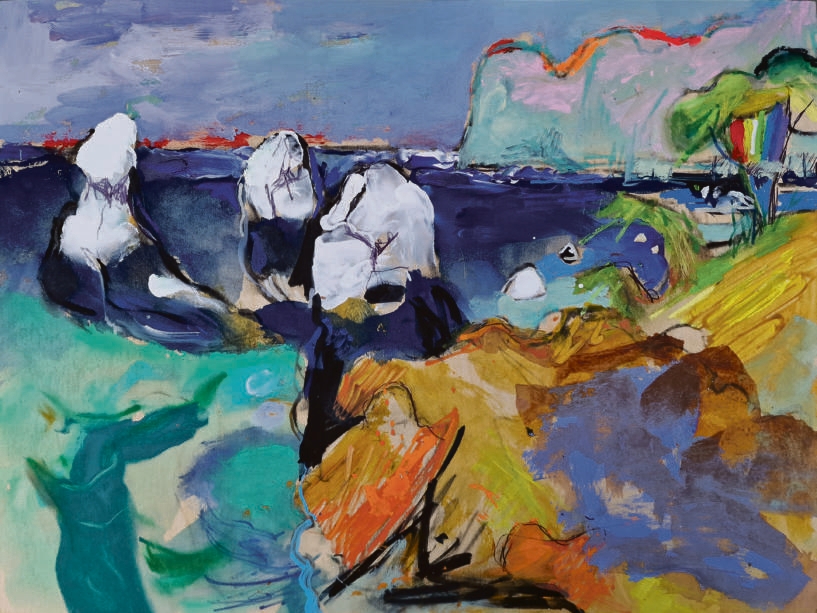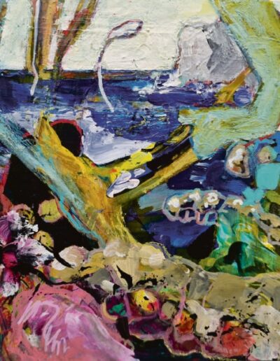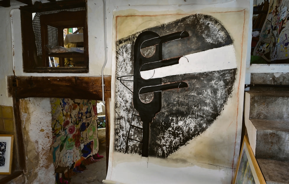 Sunna Wathen works across a spectrum of mediums from painting to sculpture, oil, watercolour, acrylic, gouache, textiles, stitching, knitting, collage, dough. Her layered and expressive pieces combine dreamscapes, inner states, landscape and still life. We meet in her multi levelled Palma studio in the old quarter, an old theatre setting.