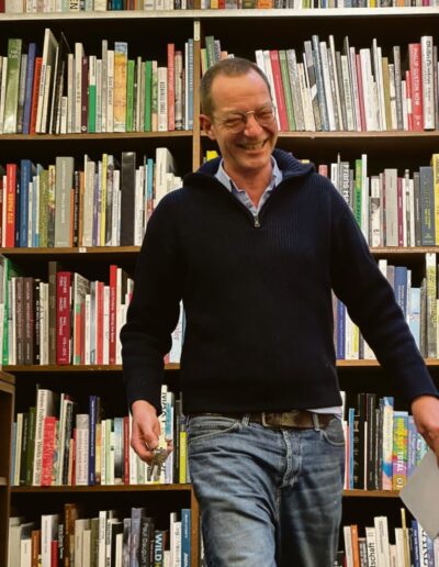 “My father is originally from Münster, Westphalia, but I myself grew up in London, I emancipated there! While studying architecture, then printing and publishing at the London College of Printing I worked part-time at Tate Modern – half time half pay half holidays – but it was great. When Tate Modern opened they reimagined the concept of a museum and hung the modern collection next to classical paintings. Landscape, history, portraiture – and Richard Long was in the landscape section as ‘nature’. I helped install the bookshop before it opened, it was very exciting and very different to what I was used to: they had a visual merchandiser, buyer… They had six tills and an exhibition shop on level 2, all designed by Herzog & de Meuron; high walls and a poster section with sugar paper always between the posters. If you were young and modern at the time and coming to London you had to buy one of these Tate (poster-) tubes – and I had to roll them!”