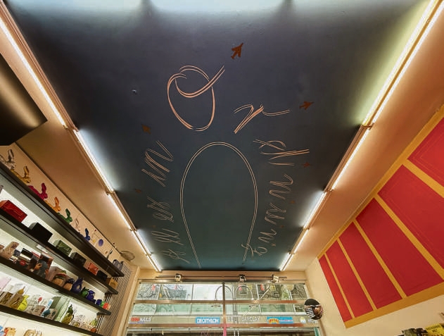 1981 my father was able to buy the Ehrenstrasse location where we are now, previously a Kebabshop. The original Breite Strasse store was turned into ‘Postkarten’, now a gift shop, at the time for my father’s and Kaspar König’s postcard publishing business. The shop was redesigned by Thomas Schütte and Ludgar Gerdes with Thomas Schütte’s ceiling mural of a plane like on an airmail sticker writing “All in Order” in chemtrail letters. Postcards were a similar idea to the artist books, the postcard as a medium for creative expression – and it’s far from ‘dead.’ You might not post them anymore today but people (still) collect postcards. At the Venice Biennale this year we are collaborating with Oriol Vilanova who is representing Spain and creating the postcard installation „Los restos“ (The Remains) at the Spanish Pavilion. We have worked with the Biennale’s Spanish pavilion a few times.“