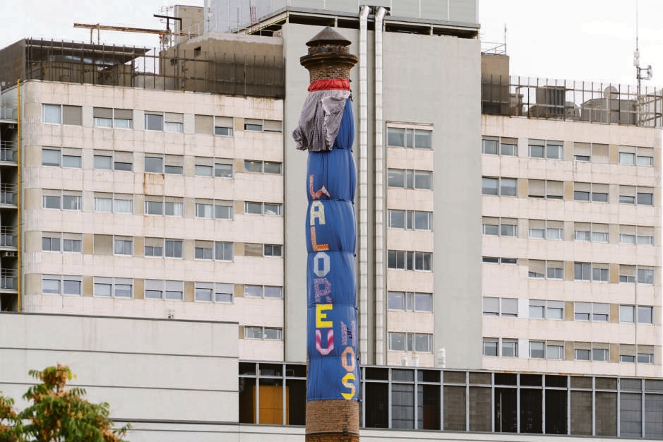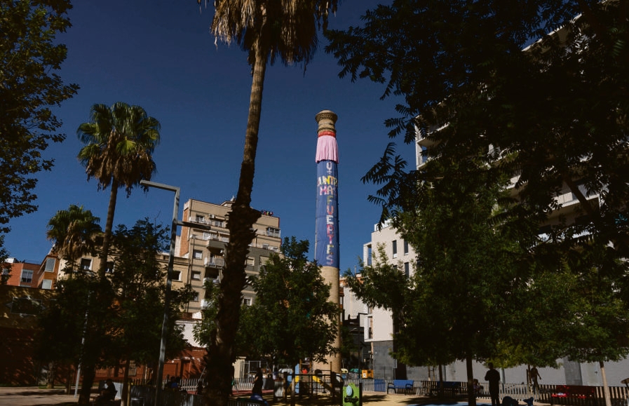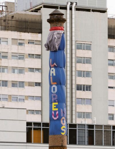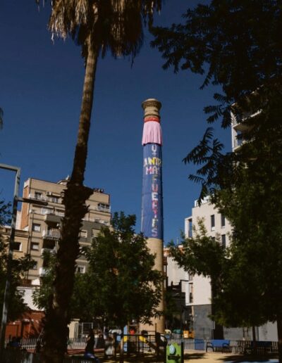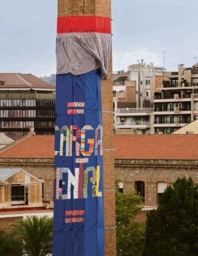 “I was invited to participate in the pre-biannial research process, which made all the difference. I got to know the area and make an indepth proposal together with my friend Erika Sprey, a Dutch-Mexican ecofeminist researcher, organizer, curator, constellator and collective dream weaver, who is also fluent in Spanish. Tourists generally only know a small part of Barcelona, and the Manifesta 15 wanted to bring attention to the larger metropolitan region. Visiting the outskirts I was intrigued by the hundreds of giant early industrial smokestacks I encountered – now decontextualized, looking out of place and time. These remnants from what was once a vibrant and extremely influential textile industry – in 1830 Barcelona was the second largest textile production centre in the world – were saved by the locals as reminders of a previous age, honouring the past, the work and the workers that built the wealth of Catalonia.